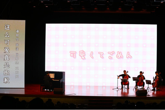 PhD student Zhaokai Pan, undergraduate Han Zhang, and their collaborators presented the music piece “Sorry for Being So Adorable”. Their unique arrangement, combining one piano with three cellos, offered a fresh classical interpretation of the popular song.