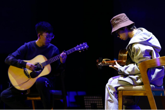 The guitar fingerstyle duet "Whale," performed by undergraduates Zhikai Qin and Haitian Qian, used the ebb and flow of its notes to paint a vivid picture: an ancient, majestic creature slowly emerging from the depths of the ocean.