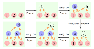 “累计推理”框架利用三个不同的LLMs来解决复杂推理问题,包括提议者 (Proposer)、验证者 (Verifier) 和报告者 (Reporter)。其中,提议者基于现有前提 (premises) 和命题 (propositions) 提出一个或几个提案来启动该过程。随后,验证者评估该提案,确定该提案是否可以作为新的命题保留。最后,报告者决定是否是终止思考过程并提供最终答案的最佳时机。