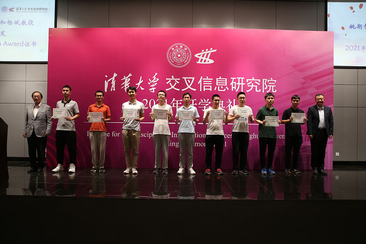 典礼上,姚期智院士和杨斌教授共同颁发了2021年度Yao Award奖学金。本年度共有12名本科生获得这项荣誉。获奖代表计科81班武弘勋同学分享了院内的高质量课程、优秀师资以及科研环境对自己的巨大帮助;他鼓励新生们充分利用开车漫画