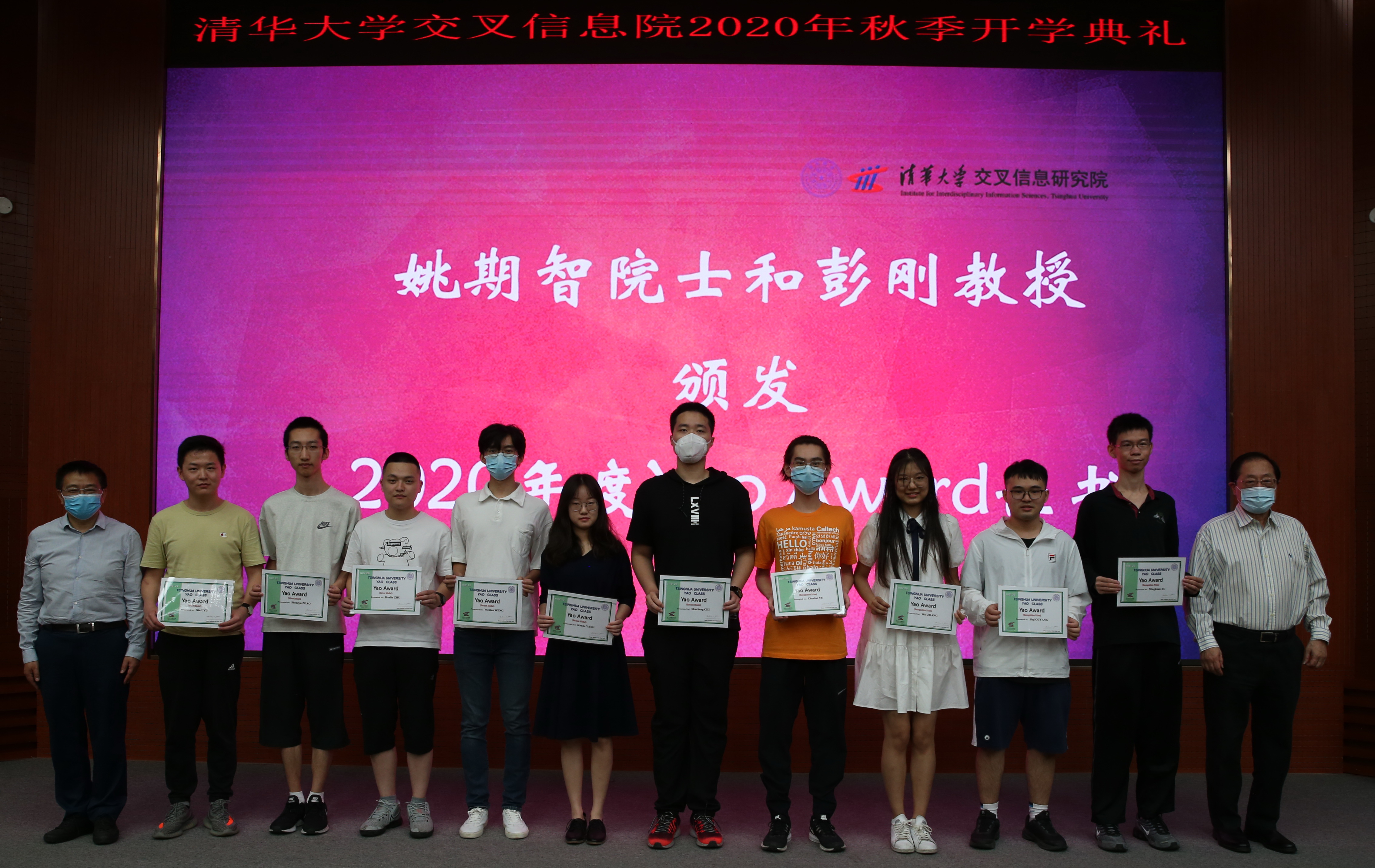 姚期智院士和彭刚教授共同颁发2020年度 Yao Award奖学金