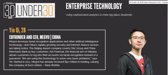 计科60班校友印奇则入选《福布斯》本年度首次发布的亚洲30位30岁以下青年领袖榜单(2016 Forbes 30 Under 30 Asia List in Enterprise Technology),并位列科技企业家榜单首位。