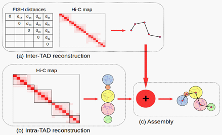 Prof. Jianyang Zeng‘s group at the Institute for Interdisciplinary Information Sciences (IIIS) and collaborators, proposed GEM-FISH, a method that systematically integrates both Hi-C and FISH data with the available prior biophysical knowledge about 3D polymers to reconstruct the 3D chromosome models. The work is recently published in Nature Communications. In the paper, they have shown that GEM-FISH can reconstruct more accurate 3D chromosome models than when using Hi-C data alone in terms of the accurate positioning of topologically associated domains (TADs) and their partitioning into the two compartments A and B. In addition, GEM-FISH could accurately capture the high-resolution features of the chromosomes. For instance, it could capture the spatial proximity of loop loci, the colocalization of genomic loci from the same subcompartment, the tendency of expressed genes to lie close to the chromosome surface. They have also found interesting patterns of the spatial distributions of super-enhancers on the three investigated autosomes (Chrs 20, 21, and 22), which can provide useful insights on the regulatory roles of super-enhancers in controlling the expression of cell identity genes.