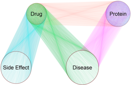 Prediction of drug-target interaction is a crucial step of drug discovery and drug repositioning. Large-scale genomic, chemical and pharmacological data provide new opportunities for drug-target interaction prediction. However, systematic integration of these heterogeneous datasets remains a challenge. Luo’s algorithm, called DTINet, employs a new machine learning approach to integrate these heterogeneous networks. The algorithm represents each drug and gene by compact patterns to remove the background noise of biological data and reveal the topological properties of drugs and genes, which is essential for improving the prediction performance. DTINet was found to outperform several state-of-the-art prediction methods. Furthermore, most of the novel drug-target interactions predicted by DTINet can be supported by known evidence in the literature. In addition, Zeng’s group collaborated with Prof. Ligong Chen’s Lab in the School of Pharmaceutical Science at Tsinghua University to experimentally validate those drug-target interactions that were rarely reported in previous studies. The experimental assays validated the interactions predicted by DTINet between three drugs and two proteins (PTGS1 and PTGS2) and demonstrated new potential applications of these drugs in preventing inflammatory diseases, which provides new insights into drug repositioning.