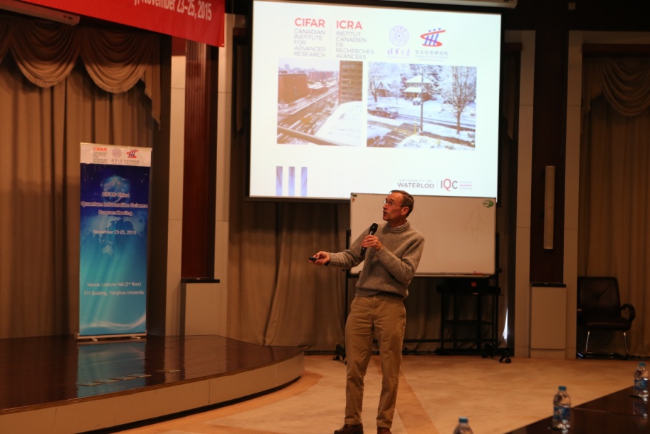 CIFAR-China Quantum Information Science Program Meeting 2015 kicked off at the Lecture Hall, FIT Building, Nov. 23, 2015. The Institute for Interdisciplinary Information Sciences (IIIS), Tsinghua University, and Canadian Institute for Advanced Research (CIFAR) hosted a delegation of prominent researchers from both China and Canada for this 3-day meeting.