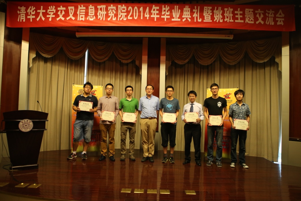 (By Shuai Sun) IIIS Commencement Ceremony and Yaoclass Meeting 2014 took place at Lecture Hall, FIT Building, on the afternoon of June 23, with the presence of Prof. Andrew Chi-Chih Yao, Dean of IIIS, Prof. Li Zheng, Director of Academic Affairs Office, Tsinghua University, and Wenxue Zhang, Vice Director of Academic Affairs Office. IIIS faculty, all the graduates and some of the student parents also attended the ceremony.