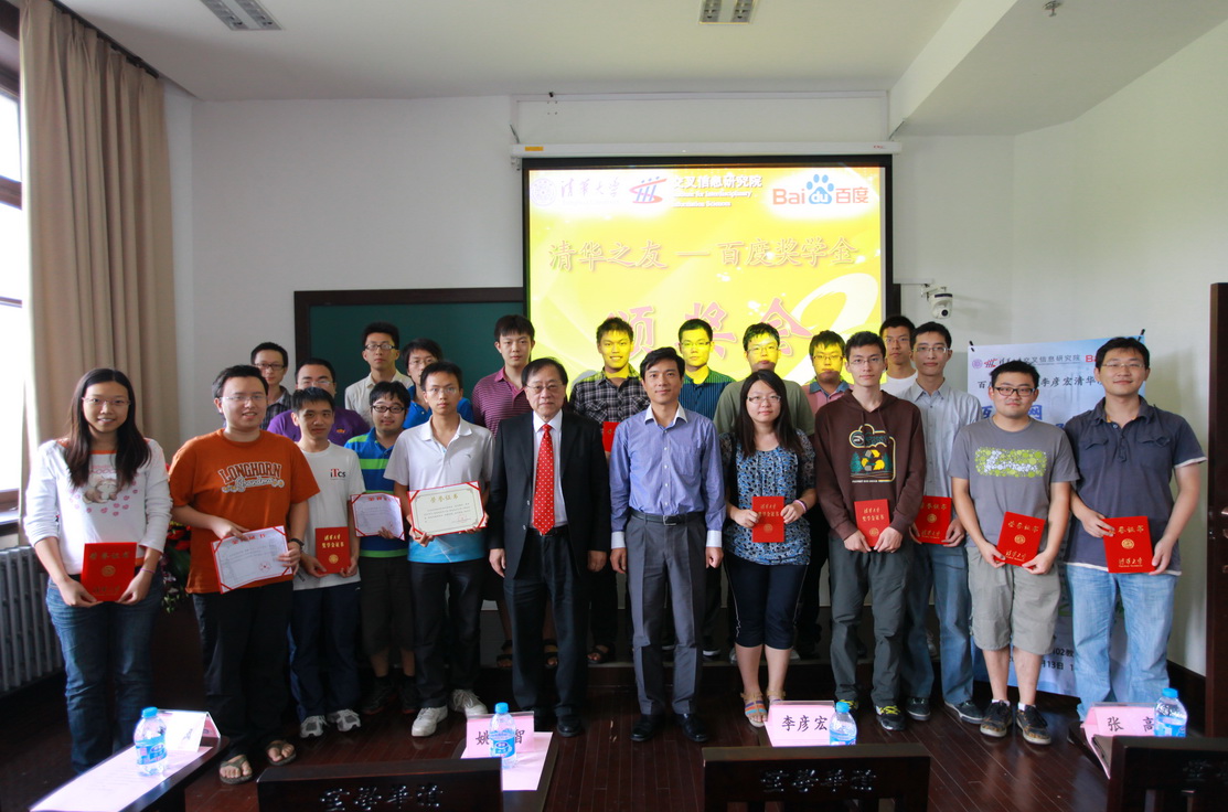 Group Photo: Prof. Yao, Mr. Li and all the “Tsinghua-Baidu Scholarship” winners