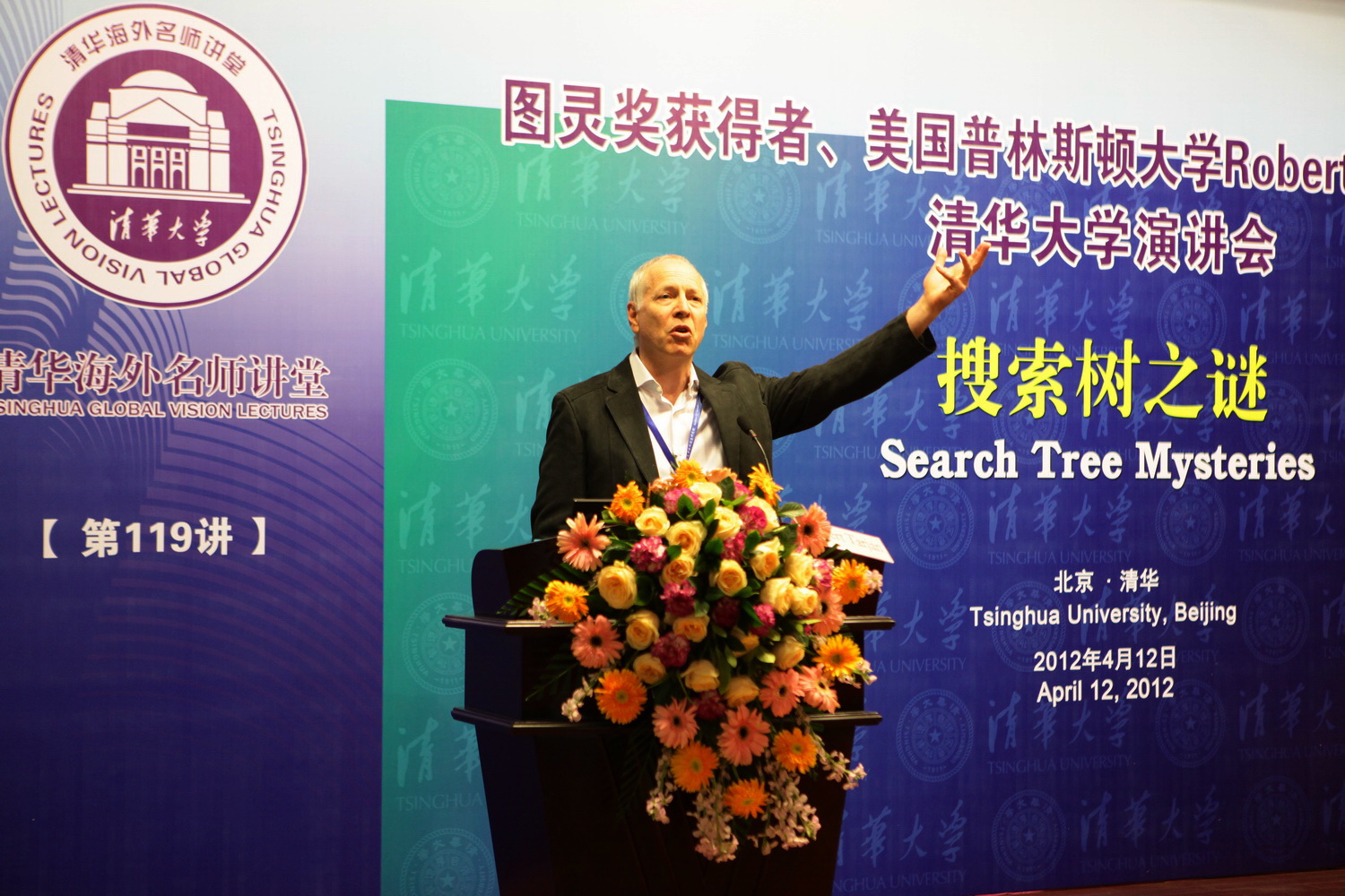 Prof. Tarjan speaks at the “Tsinghua Global Vision Lectures”.