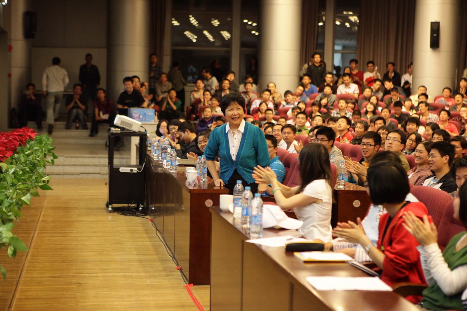 Prof. Frances Yao also joined the talk and shared the story of Prof. Donald Knuth’s Chinese name. In the Q&A session, Prof. Andrew Yao talked about his experiences at Tsinghua University in regard of talent cultivation and research. He hoped that Tsinghua’s computer science would rank top 10 or even top 5 in the world. Speaking of how to overcome difficulties in research, Prof. Andrew Yao suggested students to think of challenging problems. And he encouraged students to speak out their thoughts and nurture their research interests.
