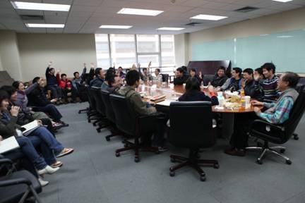 Lunch meetings of four grades of Yao Class took place during the third week of Spring semester 2011. Yao Class students gathered together with Prof. Andrew Yao to report their progress and share their latest thinking.