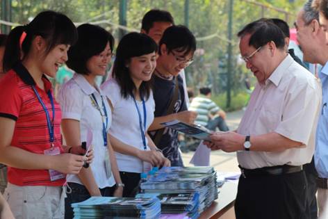 Tsinghua President Prof. Binglin Gu and VP Prof. Si Yuan also showed up at the booth and asked ITCS staff and students about the Yao Class enrollment.