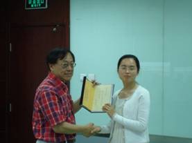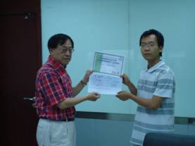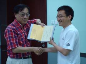 ITCS pays much attention to the graduated students and the undergraduate students studying in ITCS as well. The students are presented with different awards according to their outstanding academic results. Jing Zhang, Jie Yin and Yongxi Cheng get "Achievement Awards" and Bangsheng Tang, Hongyu Liang, Chengu Wang, Youming Qiao and Tiancheng Lou obtain "Undergraduate Achievement Award" for their outstanding senior thesis.