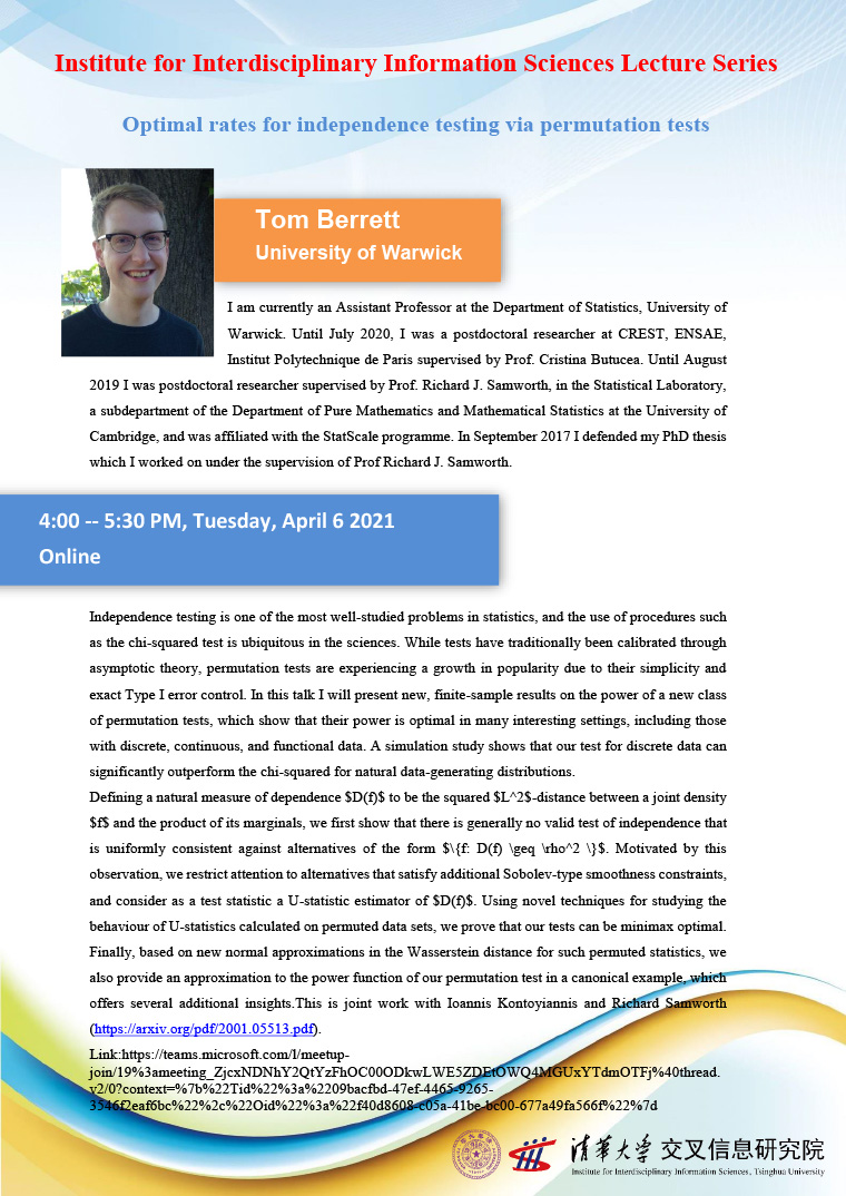 Independence testing is one of the most well-studied problems in statistics, and the use of procedures such as the chi-squared test is ubiquitous in the sciences. While tests have traditionally been calibrated through asymptotic theory, permutation tests are experiencing a growth in popularity due to their simplicity and exact Type I error control. In this talk I will present new, finite-sample results on the power of a new class of permutation tests, which show that their power is optimal in many interesting settings, including those with discrete, continuous, and functional data. A simulation study shows that our test for discrete data can significantly outperform the chi-squared for natural data-generating distributions.