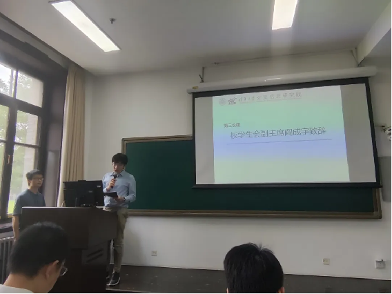 项目主任袁洋老师致辞。他对上一届联席会的工作予以肯定,表示很欣喜看到联席会为全院同学们做出的服务与贡献。他也对陈宇博、吉翔、李天宇同学表示祝贺,对联席会的未来表达了殷切的期待。