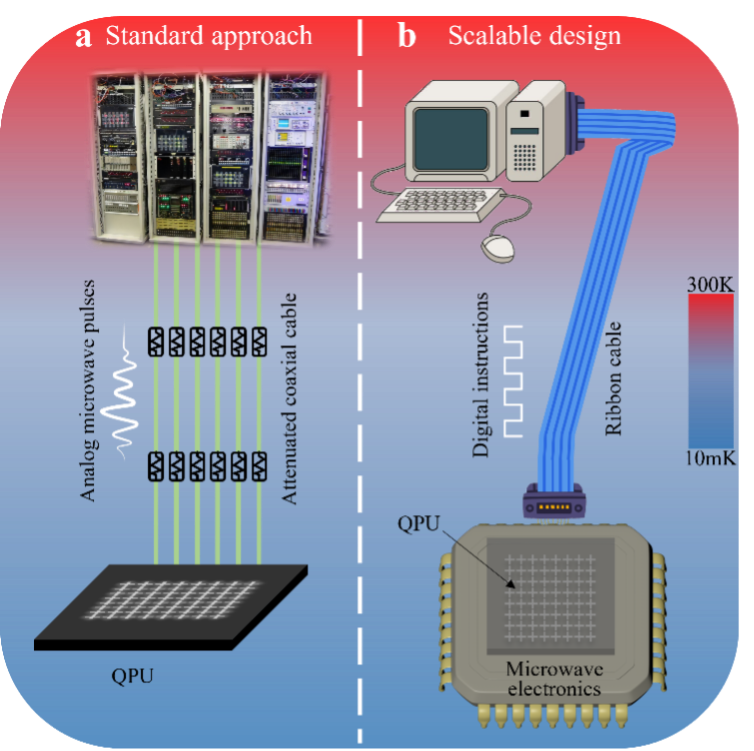 图1:当前超导量子计算机结构和可扩展超导量子计算机设计