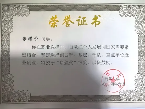 毕业生“启航奖”金奖、银奖。自2006年设立以来,“启航奖”旨在表彰“到党和人民需要的地方发光发热”的优秀毕业生,积极鼓励和引导优秀毕业生前往国家重点地区、行业和领域就业创业。