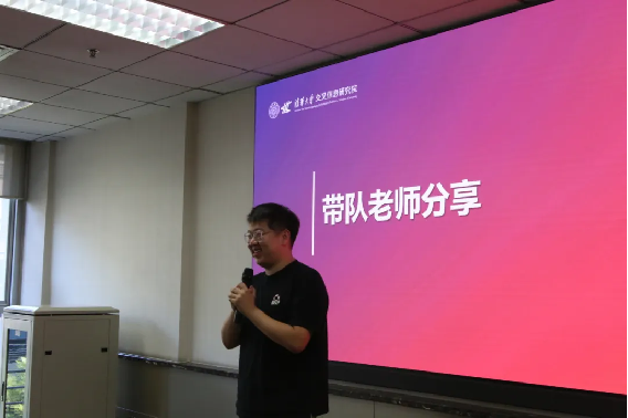 研究生“雁行”实践支队长周亦龙汇报了以“研探改革开放前沿新格局,凝聚时代青年奋进力量”——深圳信息技术研发应用调研的经验。他回顾了实践支队在深圳市博物馆、华强北电子市场、华强北博物馆体会改革开放之变,在华为与产业展开对话交流,在清华深研院、国际量子研究院感悟科研魅力的历程,并表示同学们被科研人员的敬业精神所感染,更加坚定了投身科研、服务国家的信念。