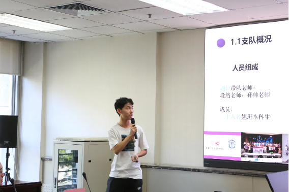 “川上风云”支队长李忆唐汇报了暑期实践深入四川寻找西部科创、西部教育的独特密码的经历。支队成员在成都体悟当地教育发展现状,在汶川县城开展以爱为名的教育传递,在涅槃重生的映秀小镇体悟星火希望中的教育复兴。实践支队组织的支教等活动在当地收获诸多好评。