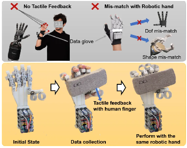 许华哲团队在机器人学习与操作研究中取得重要进展,在ICRA 2024上发表2项成果。运用强化学习算法实现通用分布式操作的系统ArrayBot,通过触觉传感器进行操作学习,可用于真实世界的多种操作任务,展示了在模拟环境训练后无需领域随机化即可迁移至真实机器人的能力。提出了一种新型的手对手模仿学习可穿戴灵巧手HIRO Hand,它结合了专家数据收集和灵巧操作的实现,使操作者能够利用自己的触觉反馈来确定适当的力量、位置和动作,以执行更复杂的任务。