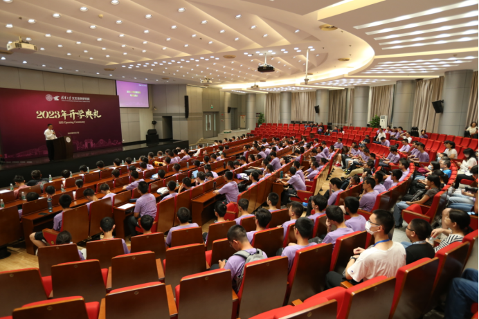 2023级全体新生、教师代表、在校生代表共同参加典礼。此外,百余名新生亲友通过线上参与开学典礼。本次典礼由宋一凡助理教授主持。