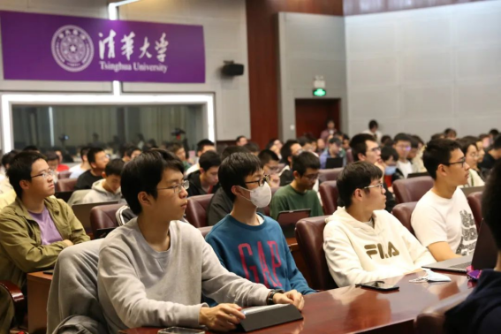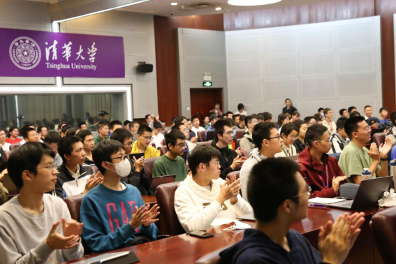 院长姚期智院士主持讲座。多功能厅座无虚席,师生共同聆听。