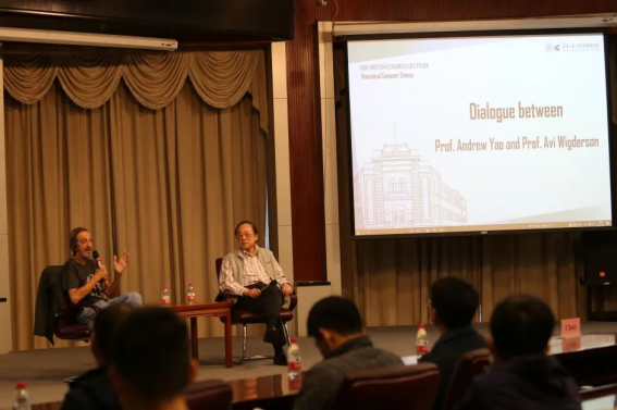 在场师生与Wigderson教授积极互动。段路明教授从量子计算的角度对算法稳定性进行提问,2021级本科生王一川和2022级本科生李星汉从算法与人工智能学习的关系等角度与嘉宾探讨。姚先生则幽默地对比了GPT4和人类的表现,引导大家重新审视“图灵测试”的内涵。