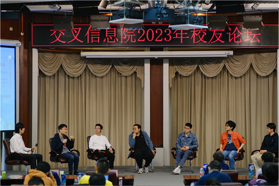 上半场的嘉宾有2015届本科生、北京虹宇科技有限公司创始人兼CEO范顺豪;2015届本科生、Microsoft Cognitive Services高级研究员徐一翀;2017届本科生、北京太极图形科技有限公司联合创始人兼CEO胡渊鸣;2017届研究生、就职于中央网信办某中心的杨菁林;2018届本科生、量化交易公司Citadel Securities量化研究员刘定峰;2020届本科生、就职于量化交易公司Jane Street的李博洋。上半场论坛由计科23黄浩峰同学主持。