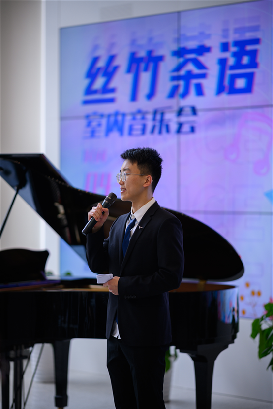 丝竹茶语,刚竹,翠竹,黄金竹,竹,高风亮节;红茶,花茶,普洱茶,茶,悠扬飘香。竹与茶的结合,可谓“茶语隐丝竹,琴音抚余香”。在主持人计科92班赵时予的开场中,音乐会拉开序幕。