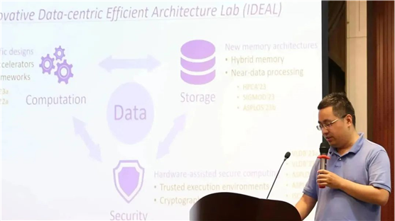 高鸣宇助理教授介绍了课题组在设计和优化计算机软硬件系统方面的相关工作,以数据为中心,支持高效的数据计算、数据存储、及数据的隐私保护。