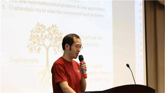 陈一镭助理教授介绍了现代密码学的前沿研究,并分享了自己的重点研究方向:基于格问题的密码学。他解读称,格的最小向量问题既与数学、复杂度理论息息相关,又有丰富的结构,能构造密码学中的各种工具。