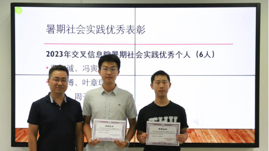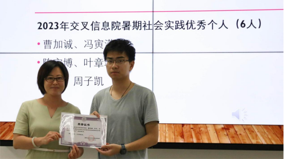 向六位暑期实践优秀个人颁发奖状。获得该奖项的同学包括曹加诚、冯寅潇、陈宇博、叶章琛、吉翔、周子凯。