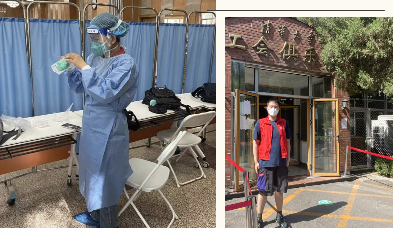2018级博士生黄嘉泰:“这是我第一次参加核酸检测志愿活动,平时测核酸拿到采样管成为“管长”就能激动好久的我有幸第一次穿上小蓝防护服进行扫码录入工作,实在是一次难忘的体验。在工会俱乐部一个下午的工作量并没有想象中那么大,期待在学生区再次身披小蓝与大家相遇!” 计科80 盛翊伦:“大学四年时光之中有两年半都在与疫情朝夕相处,校园防疫工作已经成为我本科生活之中的一部分。这次作为院系志愿者,亲身参与到防疫工作的第一线,对即将毕业离开清华园的我有着格外的纪念意义。”