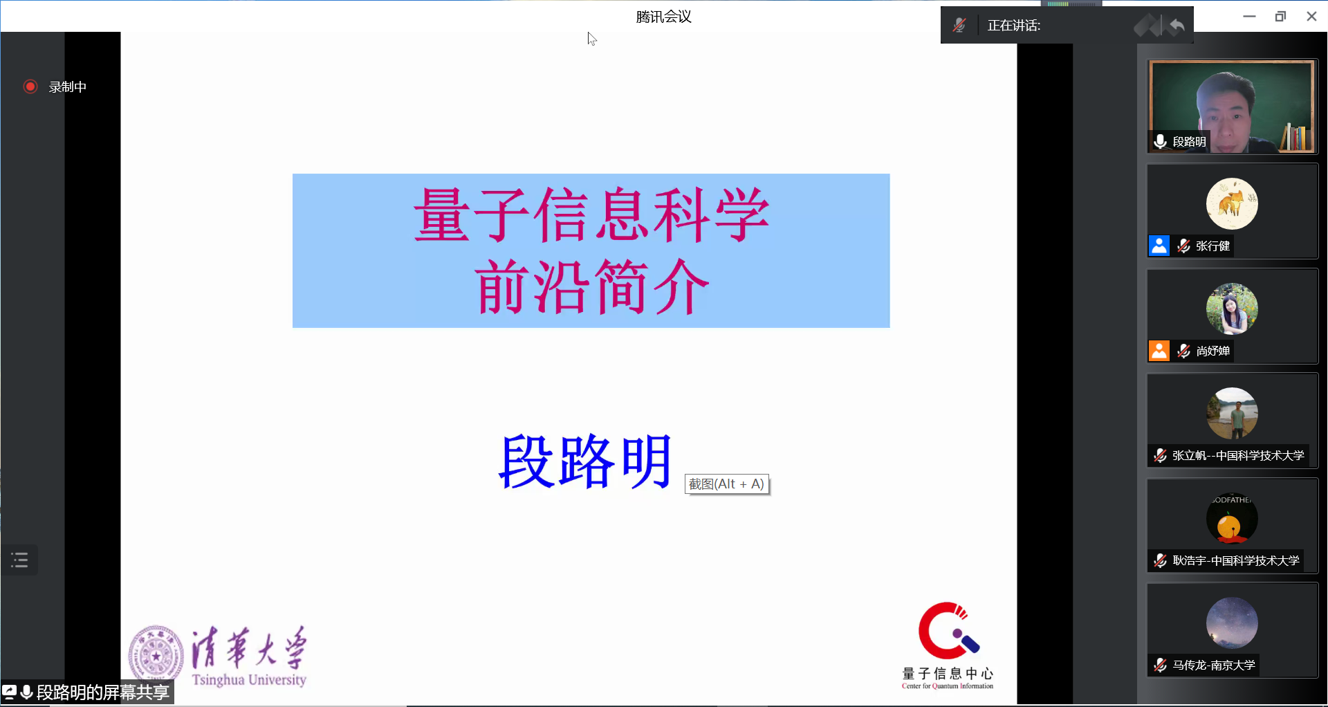 5月28日,物理学科夏令营线上正式开营。段路明教授致开营辞,并作关于量子信息科学前沿简介的报告。马雄峰、孙麓岩、邓东灵、濮云飞、吴宇恺、徐勇等6位教授聚焦量子信息科学、基于超导的量子计算实验研究、量子信息与计算、量子人工智能、原子量子中继和离子量子网路、拓扑凝聚态物理等主题,先后为营员们作学术报告。