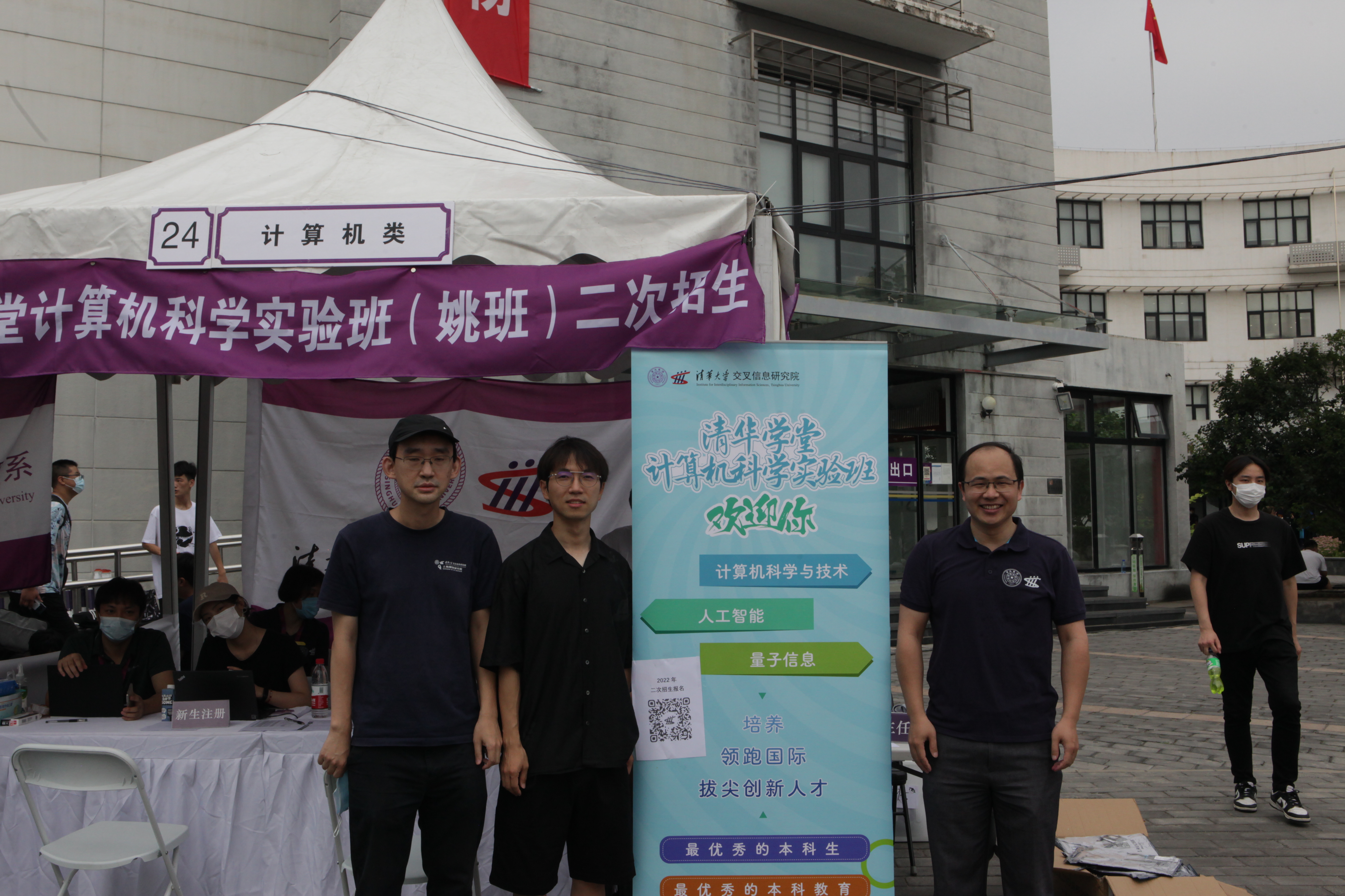 黄隆波副教授、段然副教授、邓东灵助理教授、弋力助理教授、王禹皓助理教授、杜韬助理教授、院办教师、学生辅导员和迎新志愿者,热情欢迎二字班新同学。