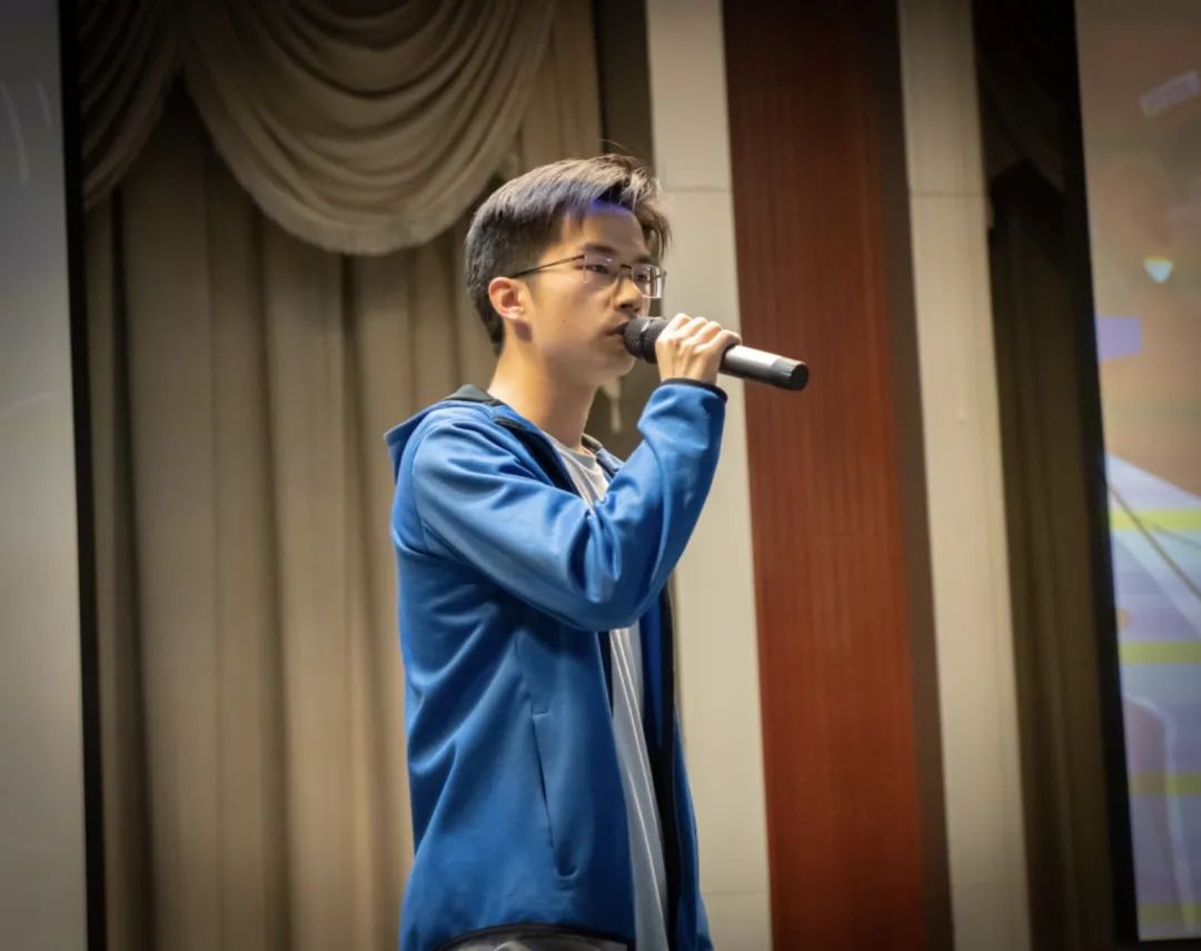作为全场唯一一位女生达人,2022级预研生刘雨玚用甜美的歌声实力演绎《小幸运》,并抓住其耳熟能详的属性与现场观众频频互动。其间,刘雨玚将话筒递给随后将演唱《枫》的超人气达人陈启航时更是将全场气氛推向了高潮。