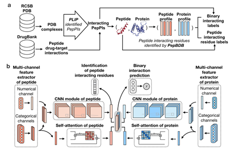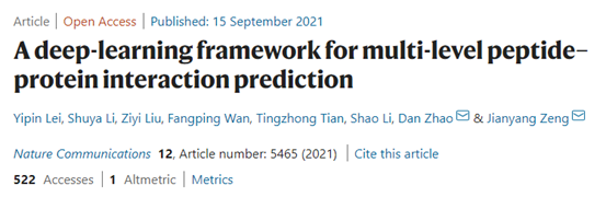 曾坚阳课题组成功开发了一个基于序列的多尺度预测多肽和蛋白质相互作用的深度学习模型。该研究为多肽和蛋白质相互作用的机制提供了一个高效的预测框架,可以在为多肽药物预测结合靶点的同时,识别多肽序列上的结合位点。相关成果《一个多层次多肽-蛋白相互作用预测的深度学习框架》(A deep-learning framework for multi-level peptide–protein interaction prediction)于9月15日在《自然-通讯》(Nature Communications)上发表。