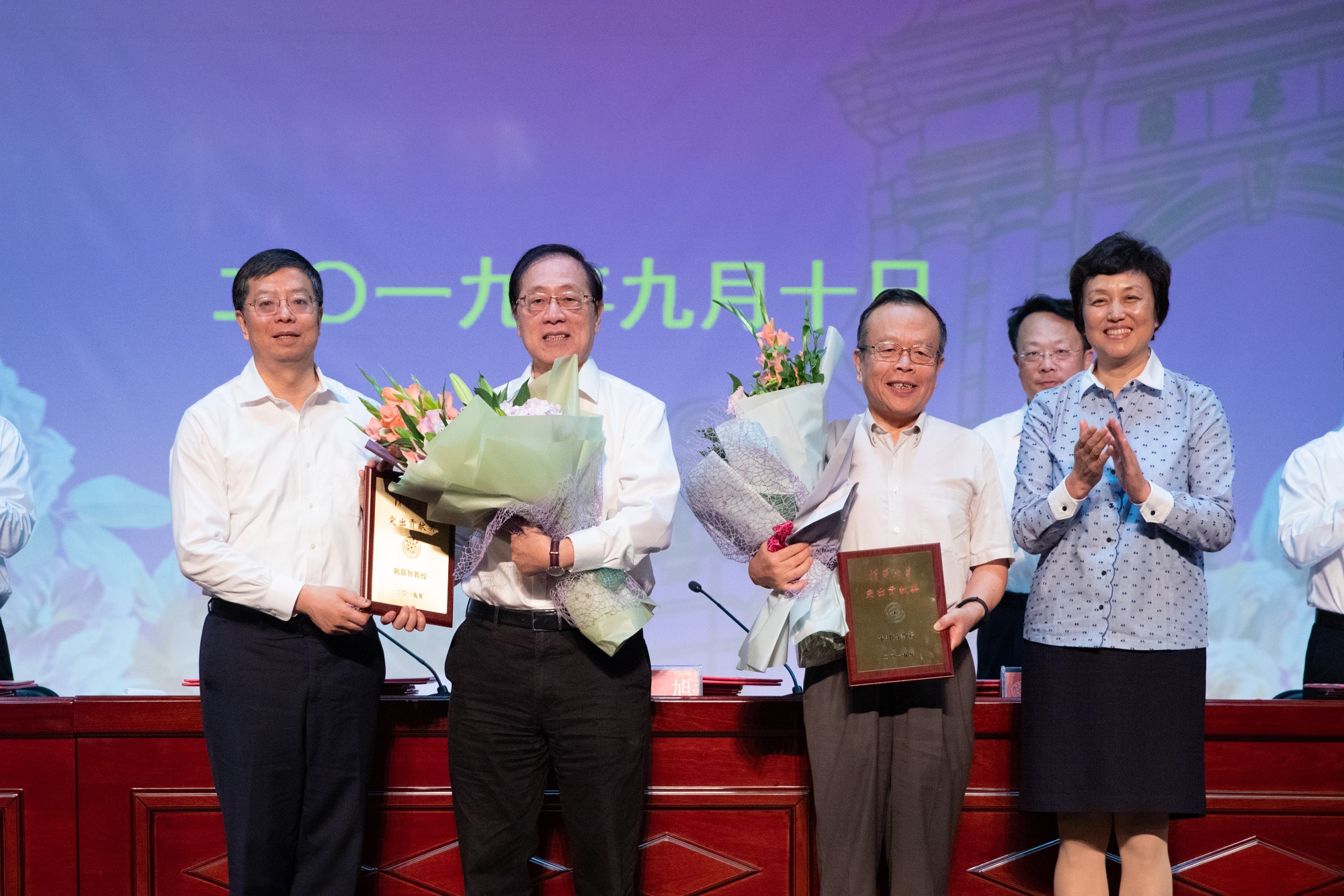 在大礼堂举行教师节庆祝大会,隆重表彰姚期智、朱邦芬两位突出贡献奖获得者,以及在教书育人等各项工作中取得突出成绩的教师和集体。