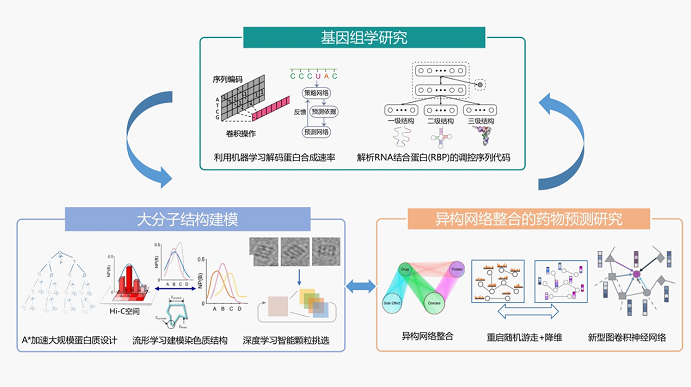 我院曾坚阳研究团队主要承担的“基于机器学习的生物数据分析和药物发现”项目利用近年来蓬勃发展的人工智能和机器学习技术,解决了生命科学和药物研发领域的一系列重要问题。其中,项目所开发的药物靶点重定位模型,能够有效整合大规模异构网络数据,为药物作用靶点提供精确预测,大大缩短了新药的研发时间。此外,项目在基因组学研究与大分子结构建模领域也取得了一系列重要的成果,开创性地通过深度神经网络整合RNA多级结构,准确解析RNA结合蛋白的调控代码,开创性地通过贝叶斯推理和流形学习方法整合物理能量与影像测量,实现基因组三维结构的准确建模。这些成果一方面为生命科学领域的基础研究提供了有效工具,另一方面也对人工智能和生物医药领域的合作和发展起到了重要的意义和深远的影响。该项目的合作完成单位还包括开车漫画