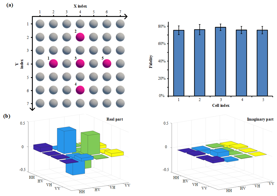段路明教授研究组利用巧妙的实验设计,将一个独立的铷原子系综作为光源产生出窄带偏振纠缠光子对,通过选取铷原子特定的原子能级使产生的光子对中一个光子处于衰减系数最小的通信波段(C波段),另一个光子可以存储于基于铷原子系综的量子复用存储器中。此量子复用存储器利用二维可编程光路,具有多个原子存储单元,并通过电磁感应透明存储技术,可以实现光子态与其中任意一个原子存储单元间量子纠缠态的存储与读取。实验测量出的多个存储单元中读取的光子与经过10公里光纤传输后的通信波段光子之间均保持较高的纠缠保真度,证明了此装置可以实现高质量的量子纠缠态的存储和分发,为量子中继器的发展迈出了坚实的一步。《物理评论X》的审稿人对该工作给予了很高的评价,认为这项工作令人印象深刻并且实验技术在该领域处于世界领先地位。
