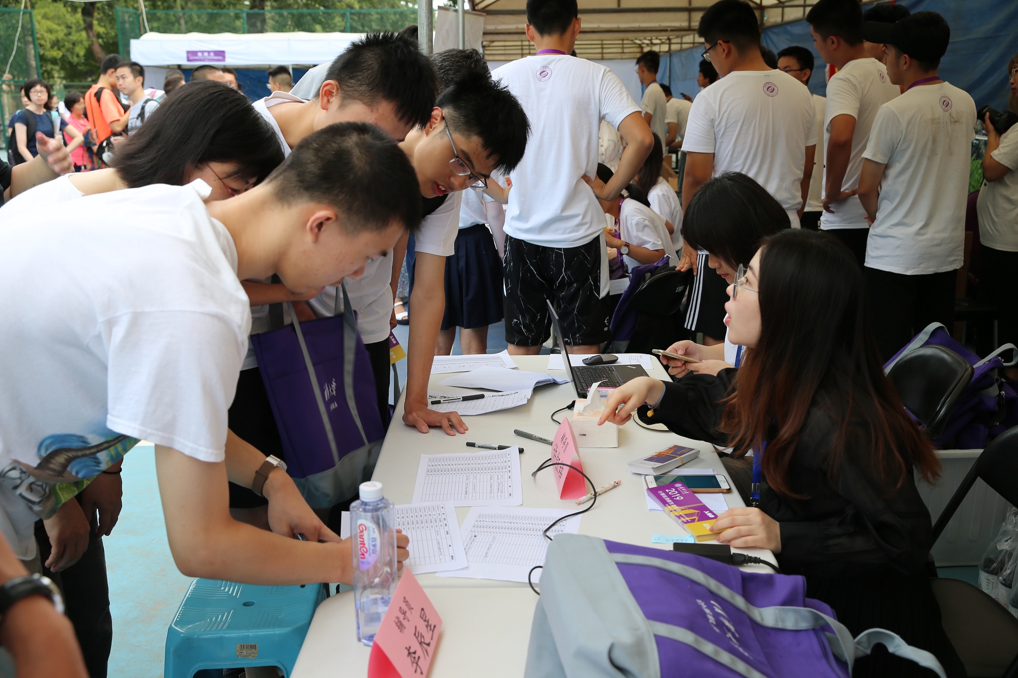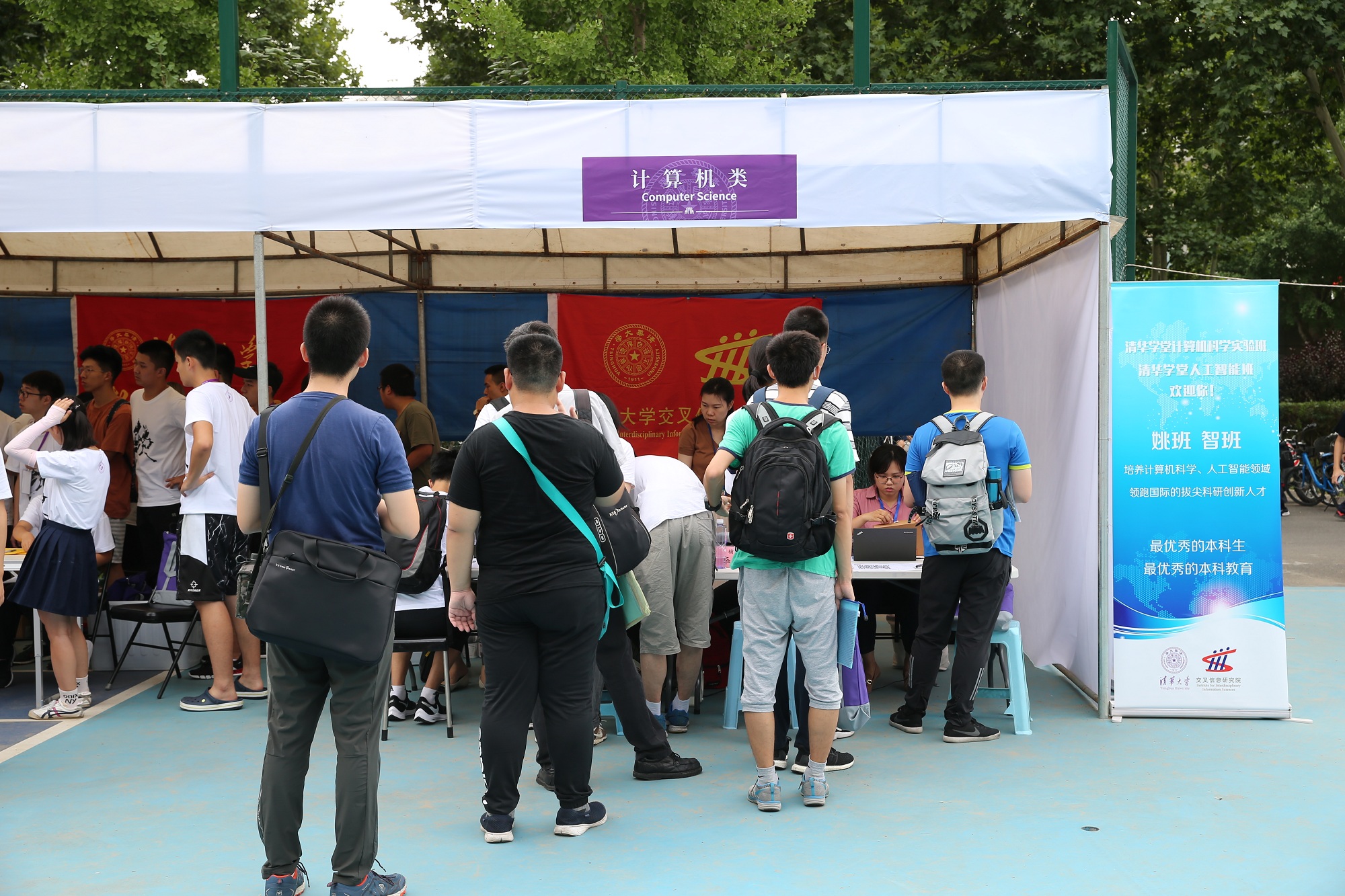 负责学生工作的老师、学生辅导员和新生骨干齐聚网球场,热情迎接九字班新生的到来。初秋时节的清华园,因为新同学的到来而充满了勃勃生机。这是茶园九字班新生与清华相遇的第一天,经历过高考的披荆斩棘,学科竞赛的摘金夺银之后,他们将在这里开启人生崭新的征程。