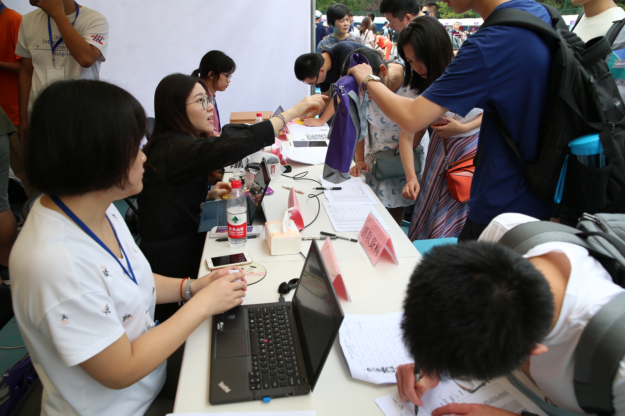 杨晨煜(左二)在报到现场