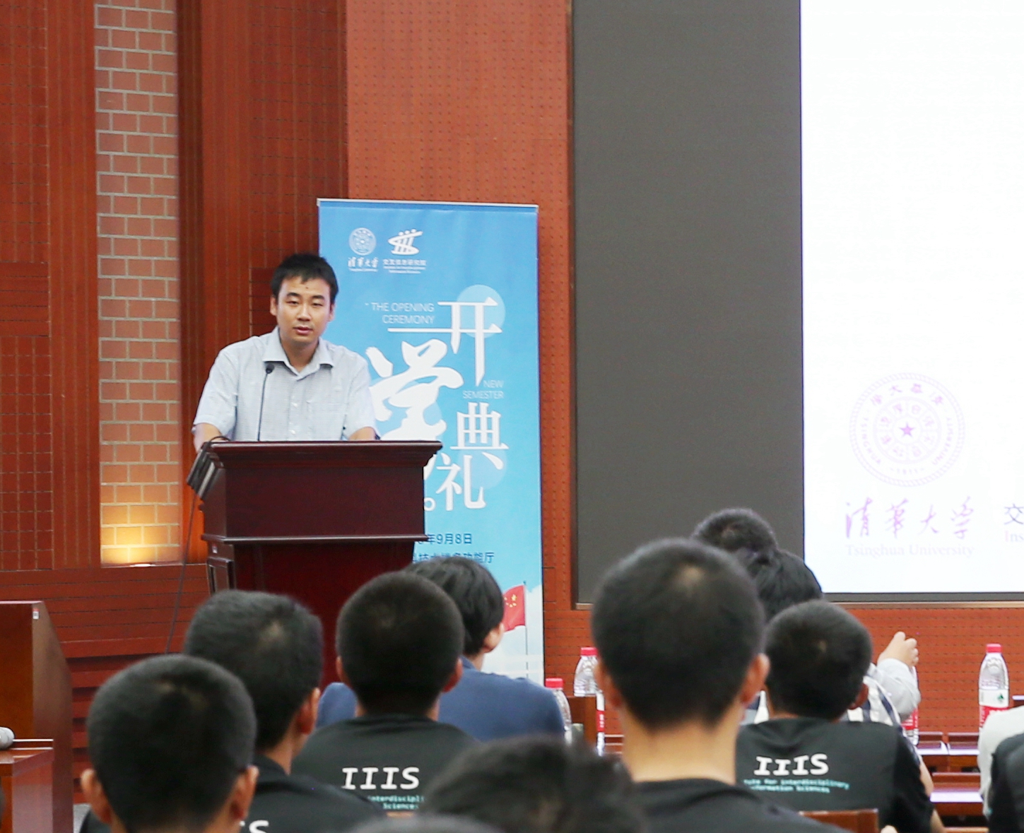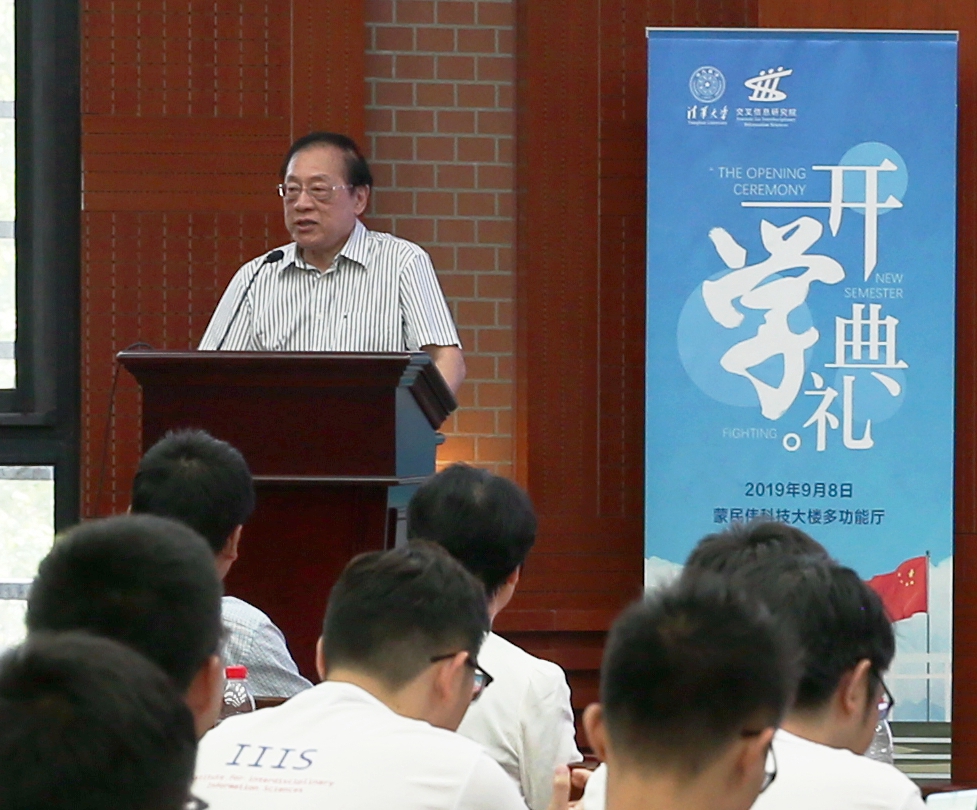 姚期智院长首先祝贺各位新生以优异的成绩考入清华,为自己过往的学业生涯提交了完美的答卷。姚先生寄语全体新生,身处于这样一个伟大的时代,充满机遇与挑战,最重要的事情要立大志、做大事,要沉下心来,戒骄戒躁,充分利用宝贵的时间去做更多有意义的事情。对于本科生,姚先生指出基础是最重要的,希望各位大一新生认真打基础;对于研究生,姚先生则希望他们尽快进入研究阶段,探索新知,并鼓励各位研究生新生先从细处着手,给自己增加信心。他表示,现在正值计算机科学的黄金时代,开车漫画