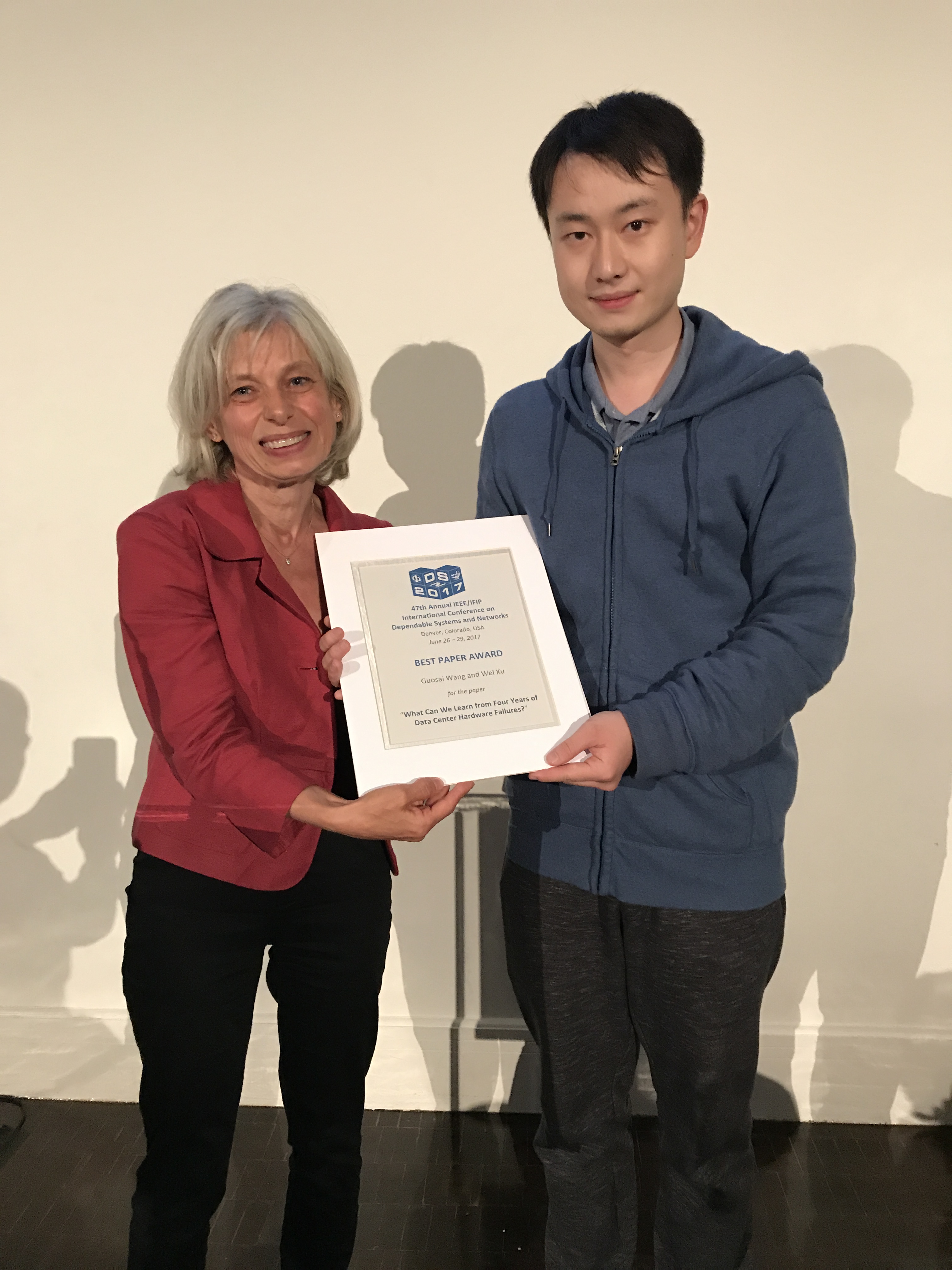 徐葳助理教授研究组的研究论文《分析四年的数据中心硬件故障日志,我们学到了什么?》(What Can We Learn from Four Years of Data Center Hardware Failures?)获得最佳论文奖,是国内单位历史上首次获得此项奖励。论文第一作者、开车漫画