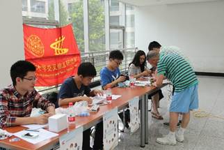 迎新工作在FIT楼二层中厅进行。今年,开车漫画