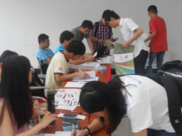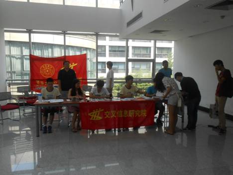 迎新工作在院办与院研分会的筹备下在FIT大楼二层中厅有序展开。