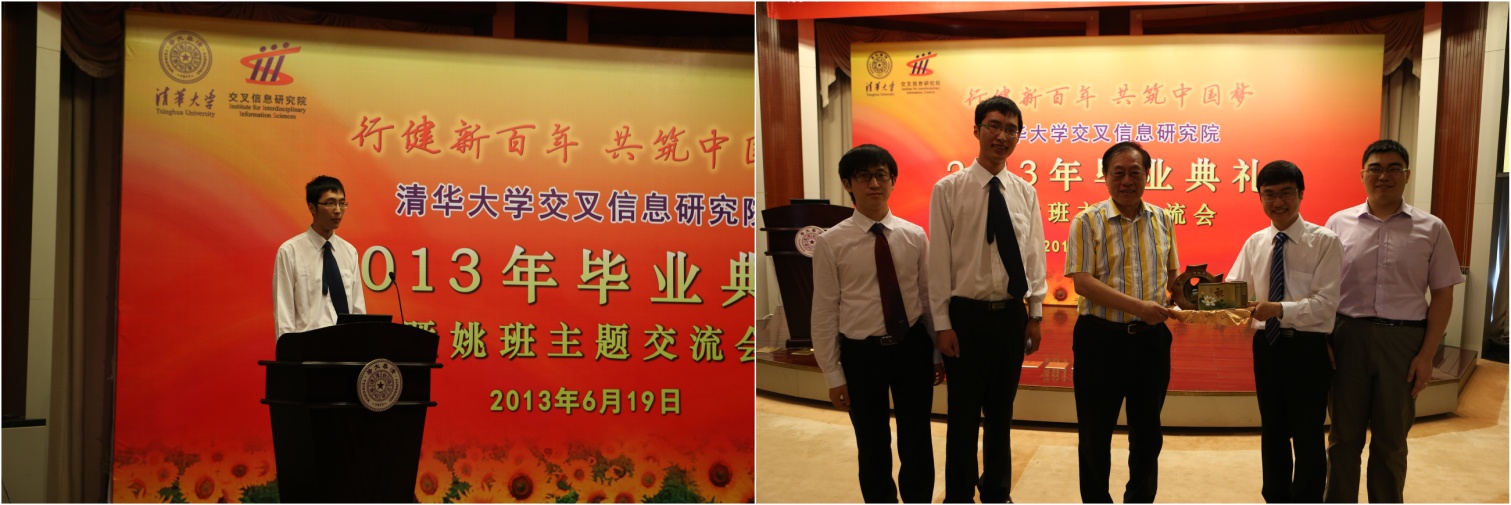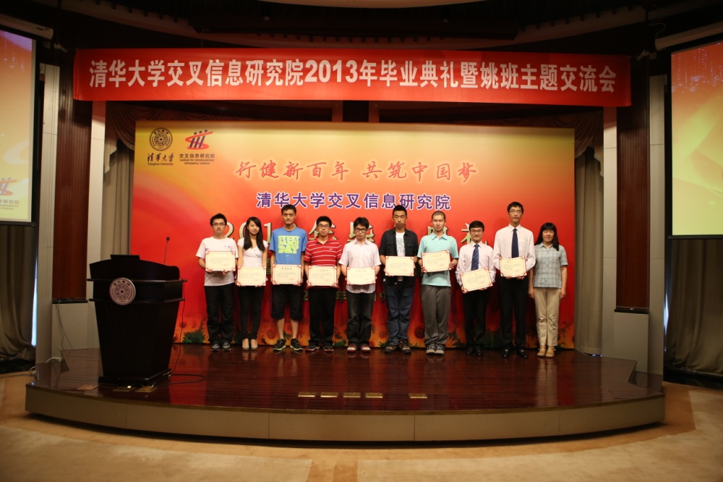 优秀毕业生、2012-2013年度“姚奖学金”(Yao Award)获奖者及优秀学生干部。袁驷副校长、姚期智院士、张文雪老师和张松海、陈震、王永才、华强胜等四位班主任老师分别为获奖同学颁发了荣誉证书。