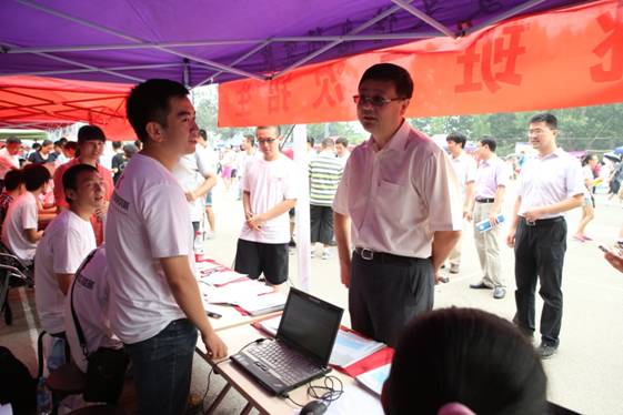 学生志愿者亲切交谈,对迎新及二次招生的具体工作给予了关心与肯定。