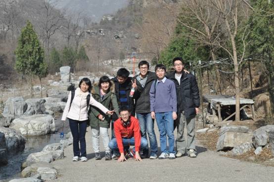 的研究生和老师怀着激动的心情踏上了前往十渡的春游之路。经过了两个小时的“长途跋涉”,我们到达了目的地,下车之后,明显就能感觉到城郊空气的清新。在丰盛的午餐之后,大家前往七渡孤山寨景区游览。孤山寨位于十渡风景名胜区七渡村南,因三座孤立的山峰而得名。这次去孤山寨不仅爬了大、小孤山见识了“一线天”,还体验了京郊最长的铁索晃桥。上山容易下山难,尤其是下了一座山又上了另一座。两座山过后,大家已经是筋疲力尽。可是当回到酒店以后,舒心的晚餐又让大家精神抖擞。