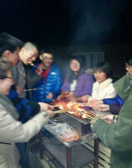 吃完晚饭后,娱乐时间开始了。大家在酒店的体育场内找到了各自喜爱的运动器械。羽毛球、篮球、乒乓球、台球,各种设施应有尽有。很多同学参加了多种运动项目。虽然运动项目都是平时玩的,但是很少有这样很多同学在一起运动的机会。各种设施都在一处,也方便了大家的多种爱好。晚上9:00大家依依不舍地离开了酒店,回到了旅店。回到旅店后,大家又聚在一起,利用这宝贵的时间开始了桌上游戏。一部分同学和老师玩起了德州扑克,大家斗智斗勇,互不相让,玩至深夜方才罢休。另一部分则在纠结于谁是“杀手”,玩起了锻炼心智与判断力的“杀人游戏”。还有的同学带来了生牛肉,在旅店空场处给大家生火烧烤,火炉边不时地传出阵阵香味,令人谗言欲滴。