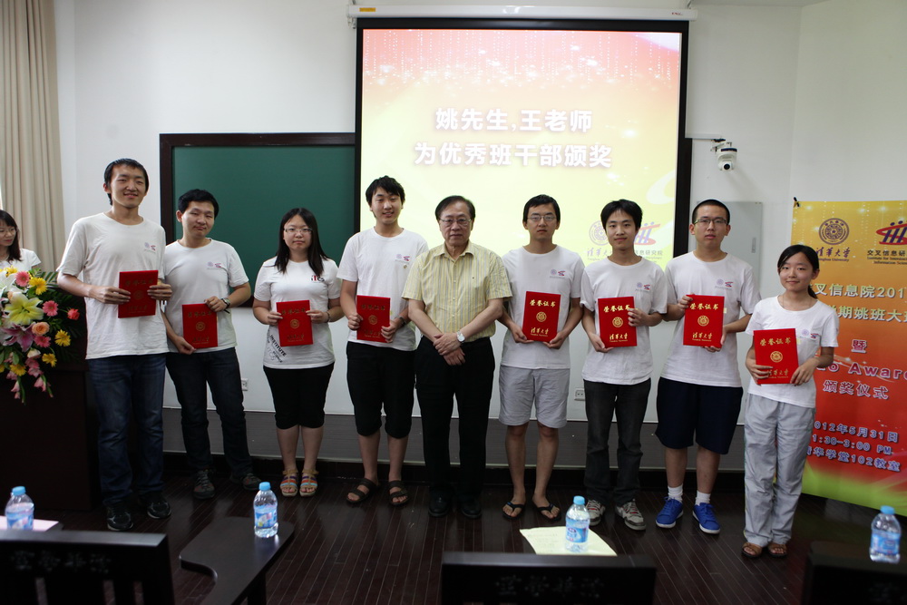 姚期智院士为计科00班班长高伟豪颁发优秀班集体荣誉证书